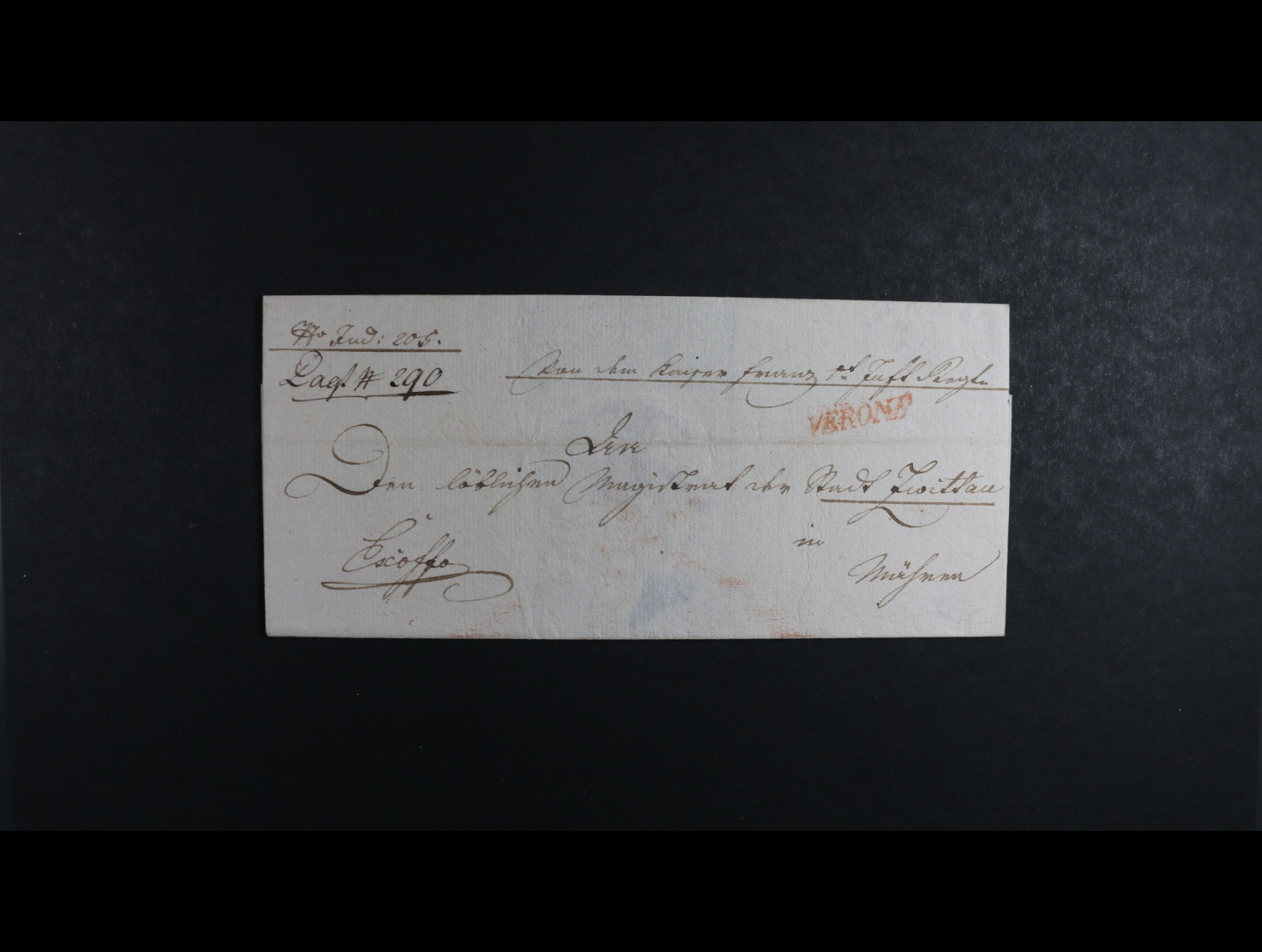 1132 služ. skl. dopis z r. 1830 do Svitav s červenýum řádkovým pod. raz. VERONA 400