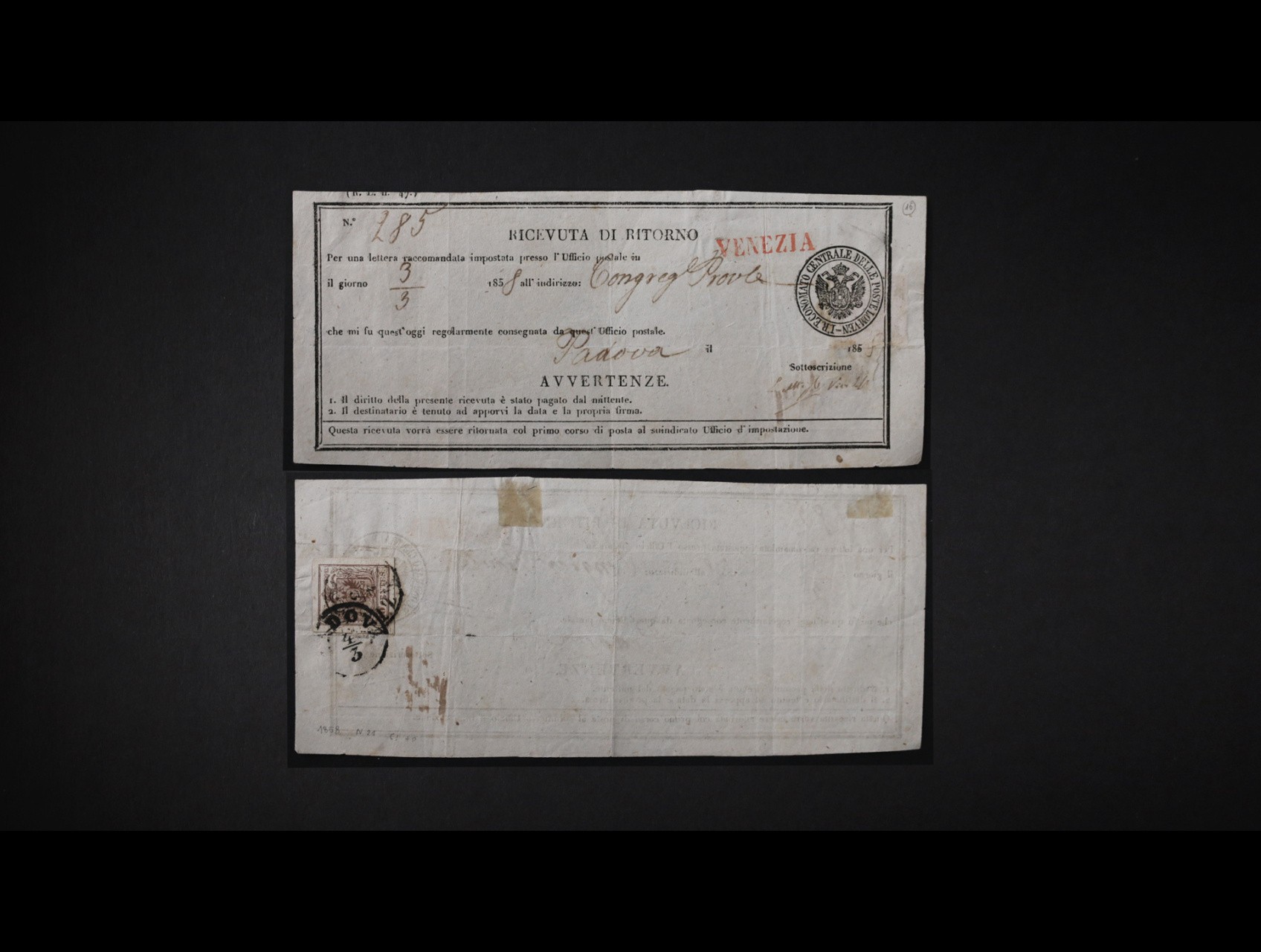 1137 ZPÁTEČNÍ RECEPIS (Ricevuta di Ritorno) frank zn. Fe. č. 4,. 30 CTS MP III, raz. Padova, Venezia, ještě „Vorphila“ typ recepisu; bezvadný střih, kat. Ferch. 1000 EUR 4000