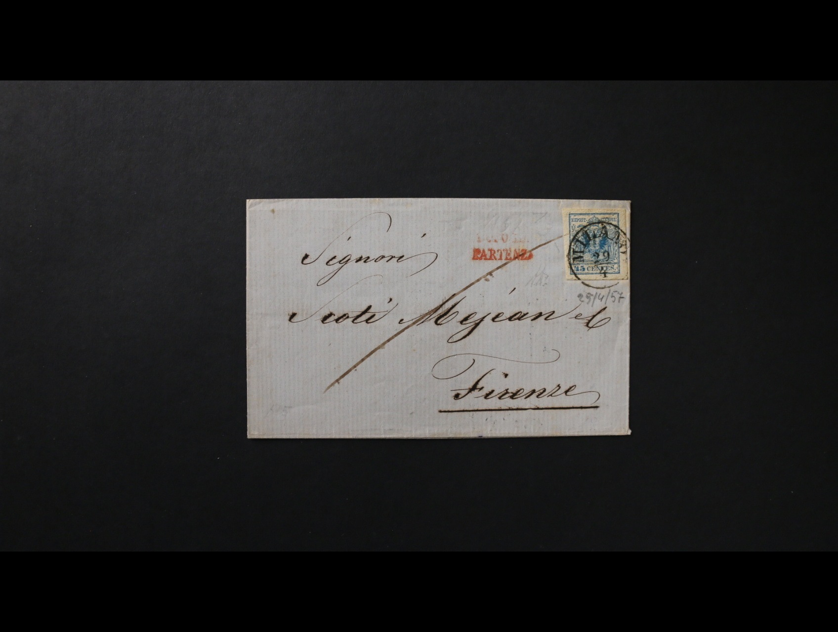 1138 skl. dopis z r. 1857 frank. zn. Fe. č. 5, 45CTS III HP, Milano, přídavné červené raz. DOPO LA PARTENZA (podáno po odjezdu pošty, zpožděná zásilka), zk. A. Diena, luxusní střih, kat. min. 90 EUR 600