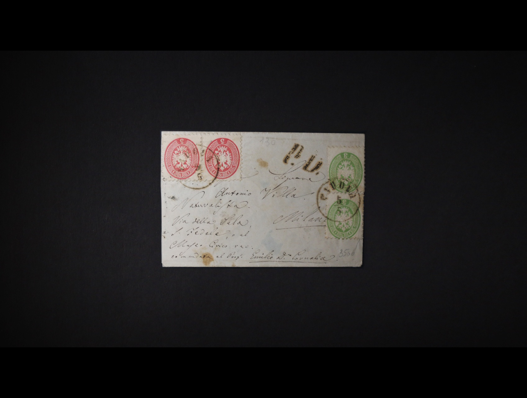 1140 emise 1864 - dopis z Padovy do Milána 3+3+5+5Sld, kat. 400 EUR 2000