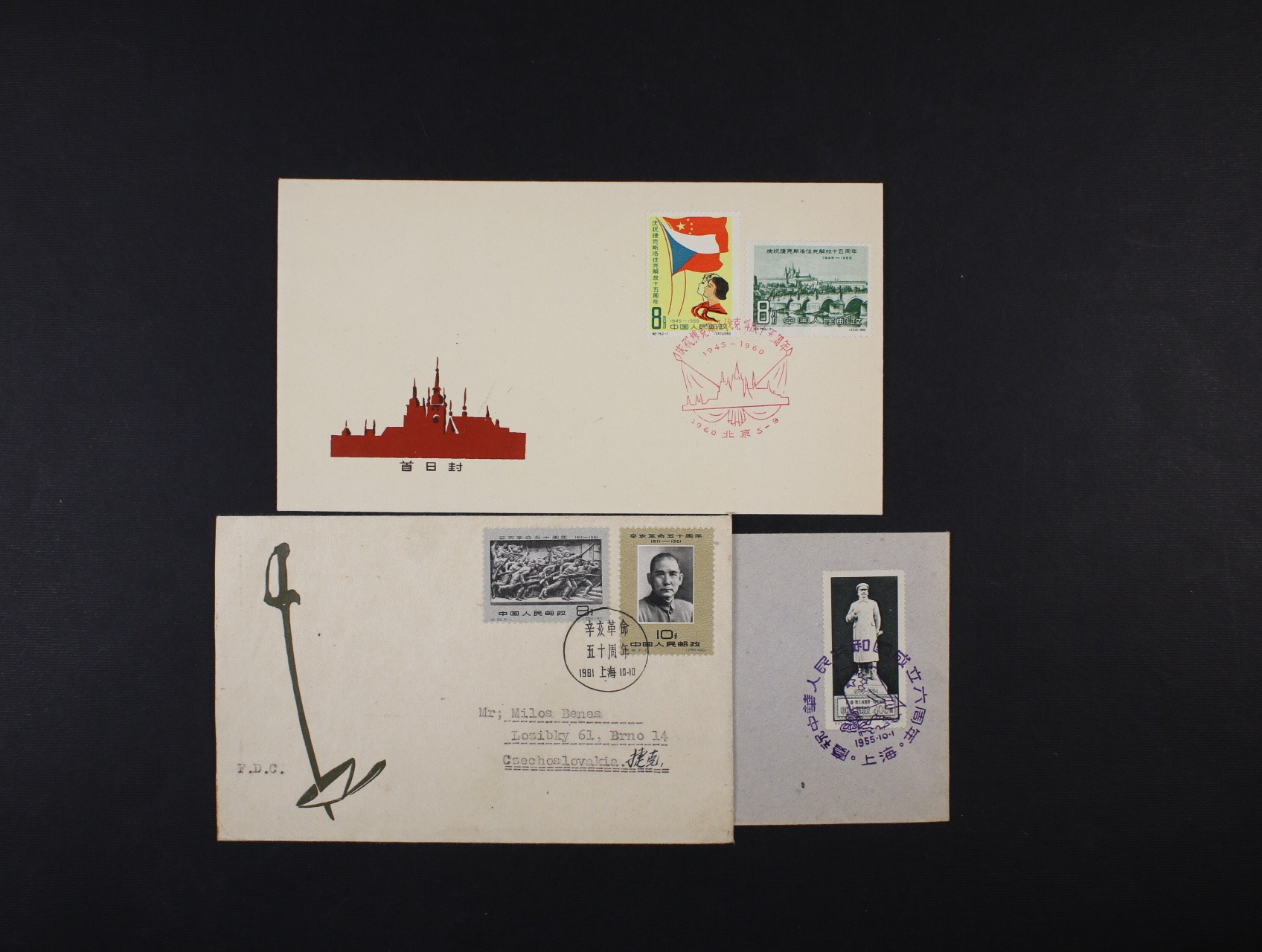 Čína - FDC se zn. Mi. č. 255, FDC se zn. Mi. 532 - 33, FDC frank. zn. Mi. 606 - 7, cca 140 EUR