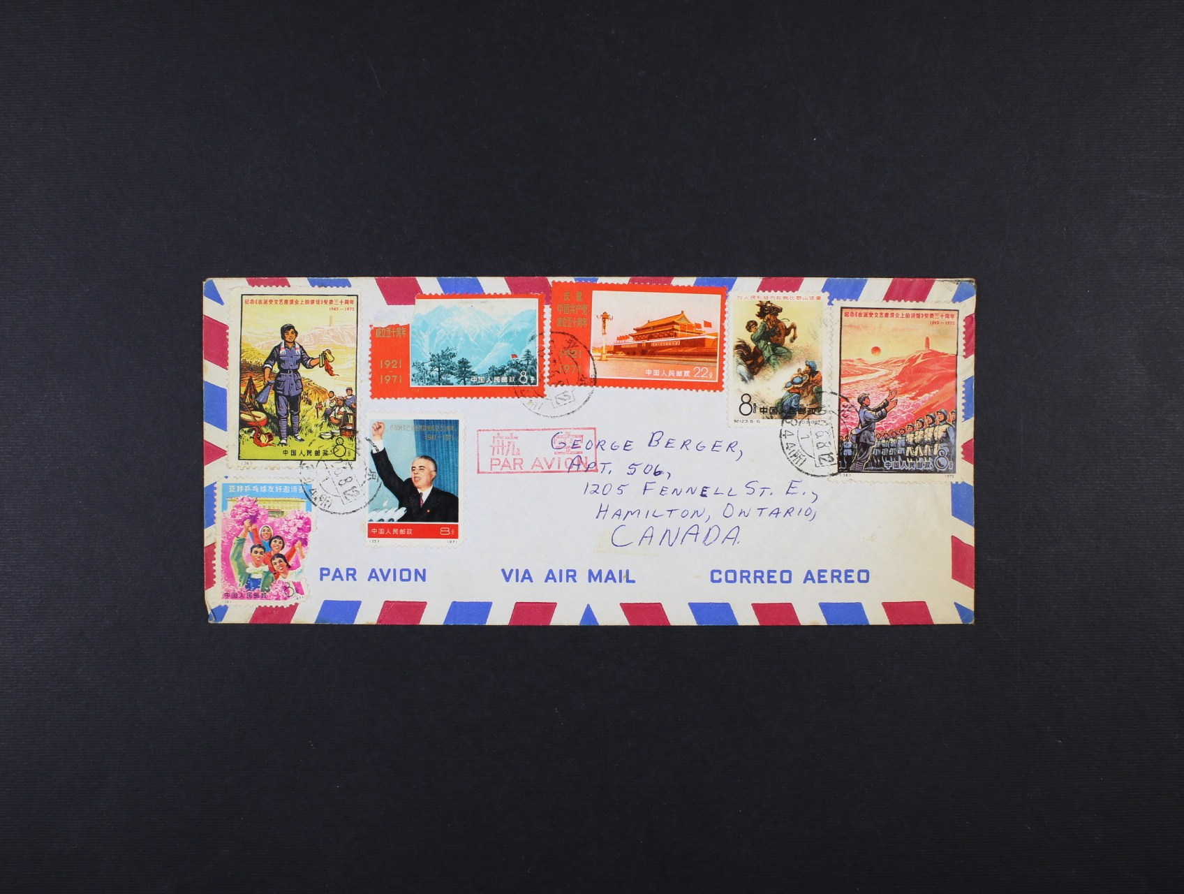 Čína - let. dopis do Kanady frank. zn. Mi. č. 963, 1076, 1082, 1094, 1098, 1103, 1105, stopy pošt. provozu