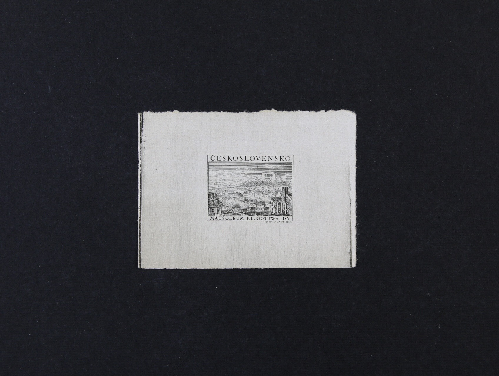 ZT zn. č. 772 v barvě černé na kousku kříd. papíru, na okrajích zbytky nevyčištěné desky, na zadní str. 3x otištěný pravý roh desky, zk. Karásek
