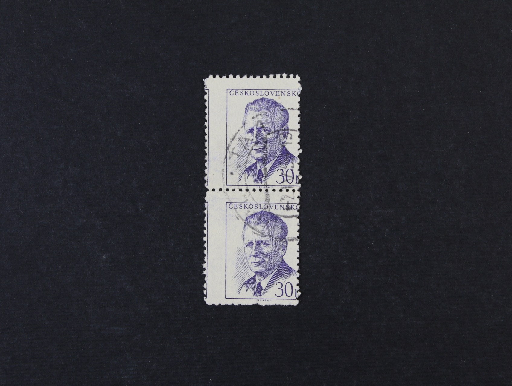 zn. č. 999 B ve svislé dvoupásce se silným posunem svislé perforace až do další zn.