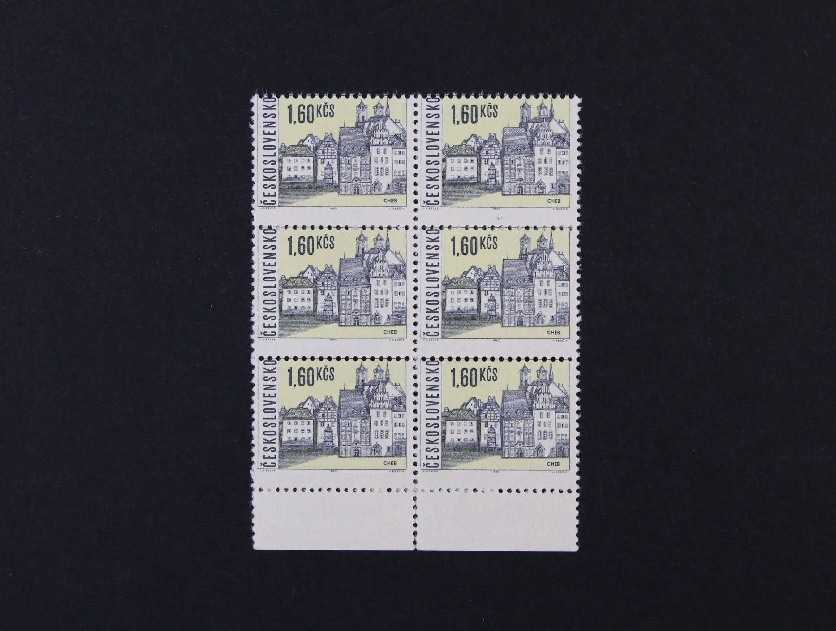 zn. č. 1480-8, Čs. města, levé dolní rohové čtyřbloky, zn. 1484-8 s daty tisku, pěkný stav