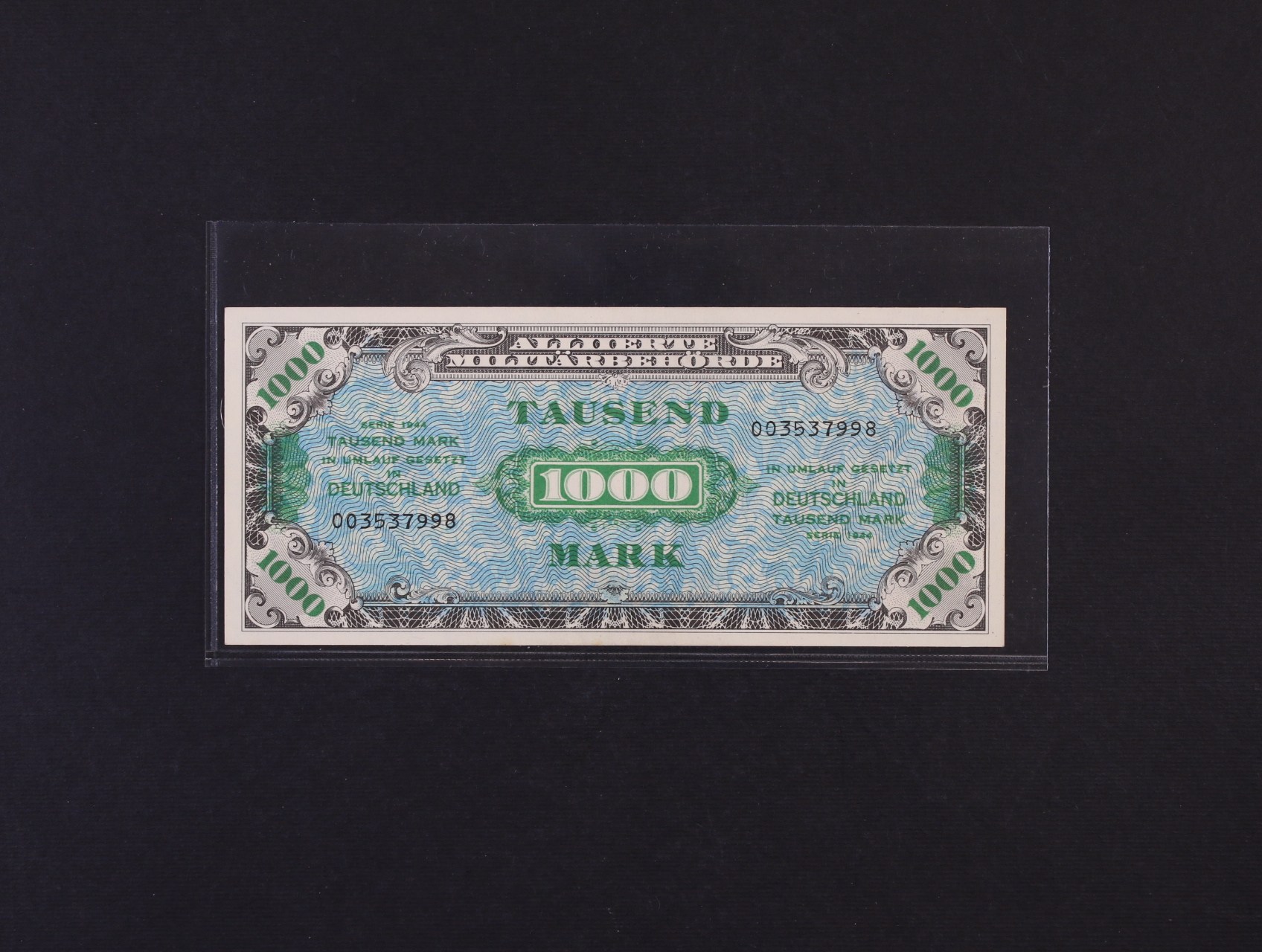 1241 Allierte, 1000 Mark 1944 9-ti místný číslovač, tisk USA, platná na ČS území, Ba. AM8a, Ro. 207a, Grab. AMB-8a 18000