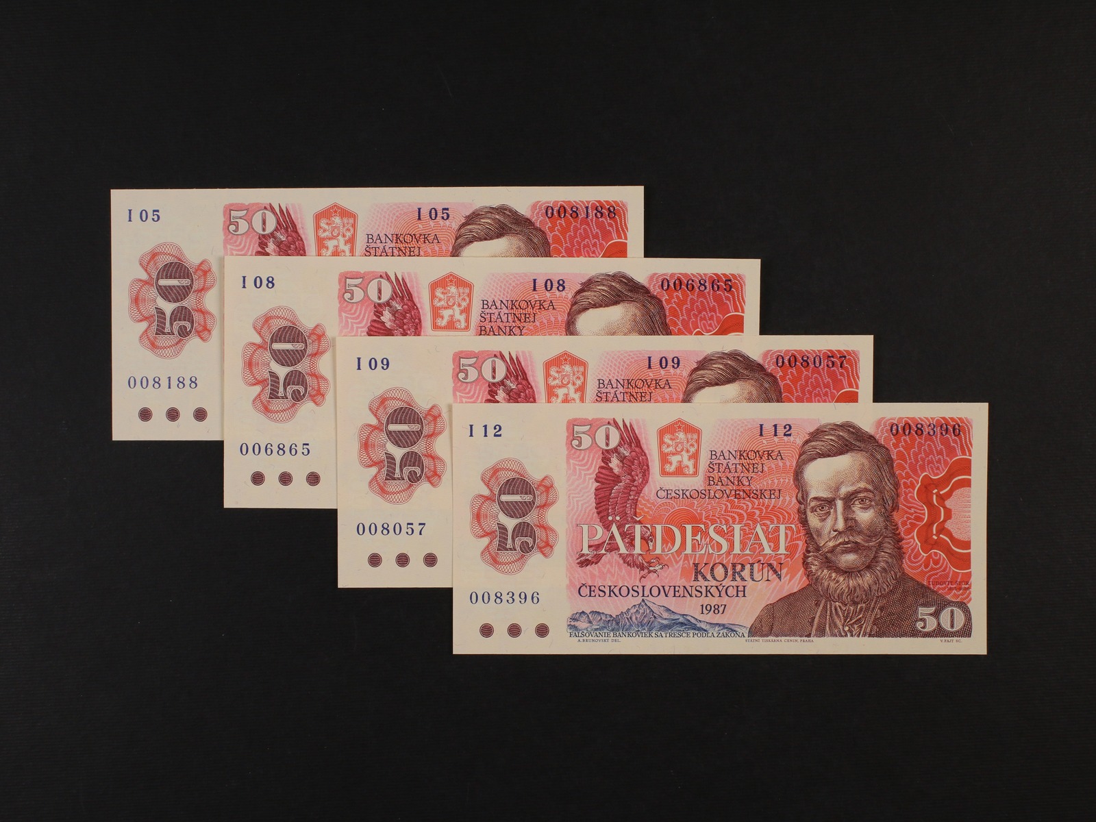 50 Kčs 1987 série I 05, 08, 09, 12, Ba. 104b, Pi. 96a, 4 kusy